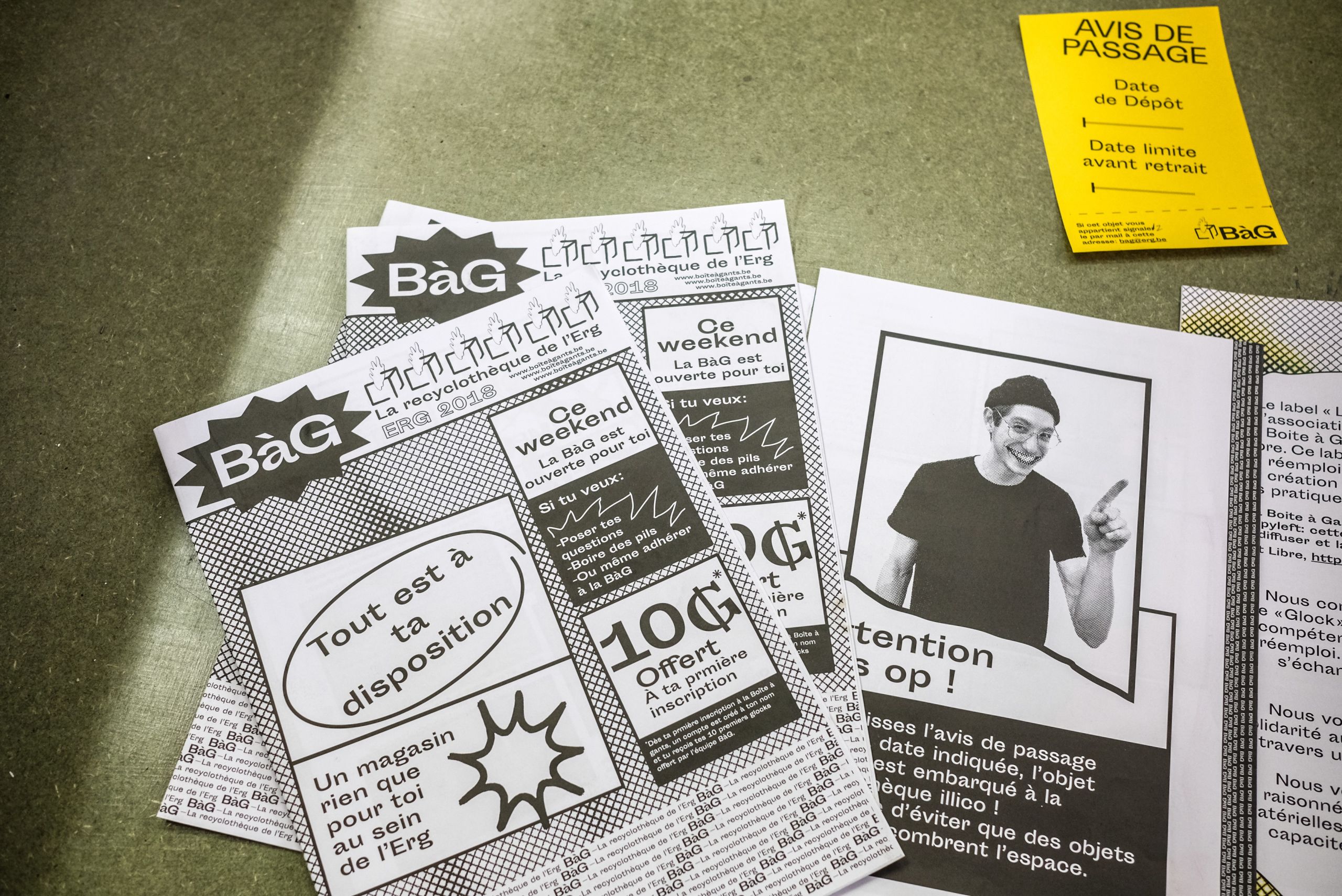 Difficile de passer à côté en se perdant dans l’Erg : cette école d’art était à l’époque un garage automobile. En témoignent le sol en béton ciré, les grands espaces, les escaliers en métal et… le nom de la première récupérathèque de Belgique. « Nous avons nommé ce lieu la « Boîte à Gants » (NdlR : dites « BàG » pour vous faire comprendre parmi les étudiants de l’Erg) en référence à cette partie de la voiture où l'on stocke de tout », témoigne Albert Lemaistre, coordinateur du projet et étudiant en dernière année de pratiques artistiques et outils critiques.