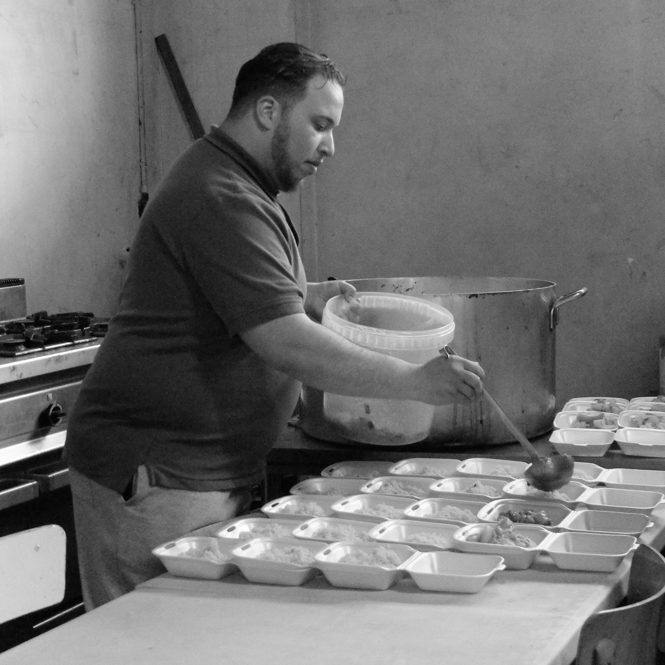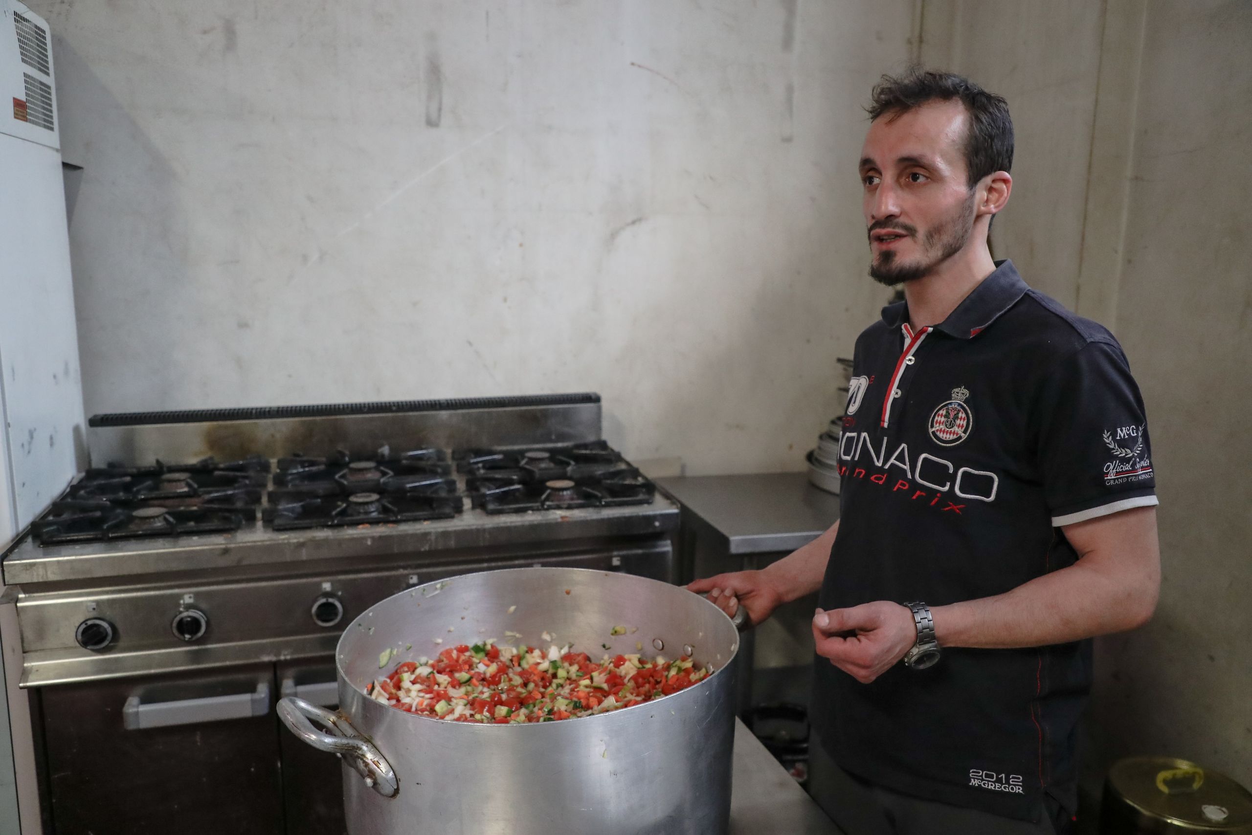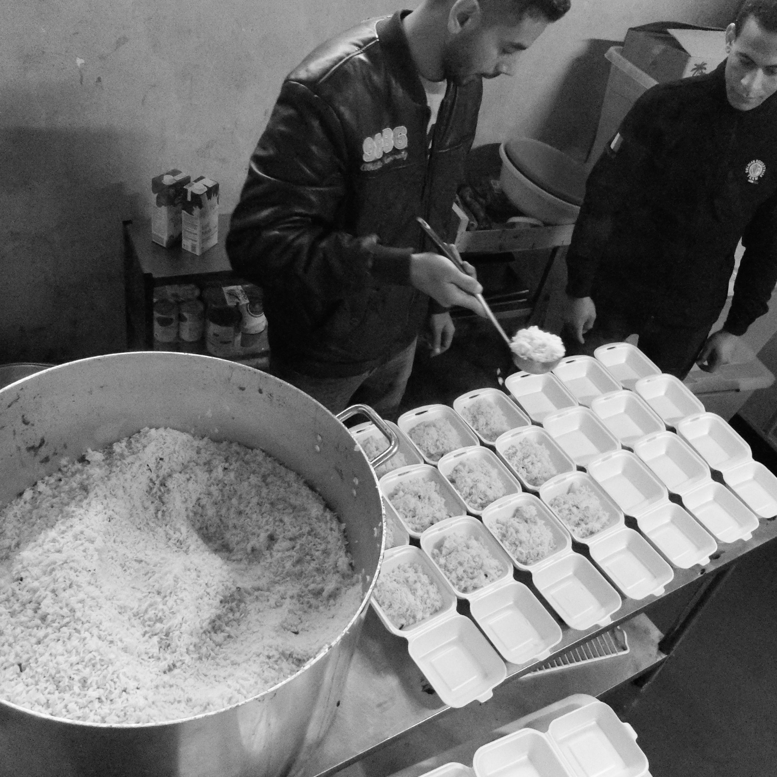 Il est 18h et Saïd, un Égyptien en cours de procédure de régularisation, aide Émilie à charger son vélo-cargo de la quarantaine de barquettes de plat du jour qu’ils ont auparavant remplies ensemble. « Poulet, riz, aubergines, pommes de terre et sauce tomate », lui détaille-t-il par le menu tout en s’assurant que le sac réfrigéré est bien accroché. « Il y en a combien ? », demande Yassine. Après un rapide calcul, Saed lui répond qu'il doit y avoir 45 portions. « On peut encore en ajouter quelques unes », affirme-t-il.