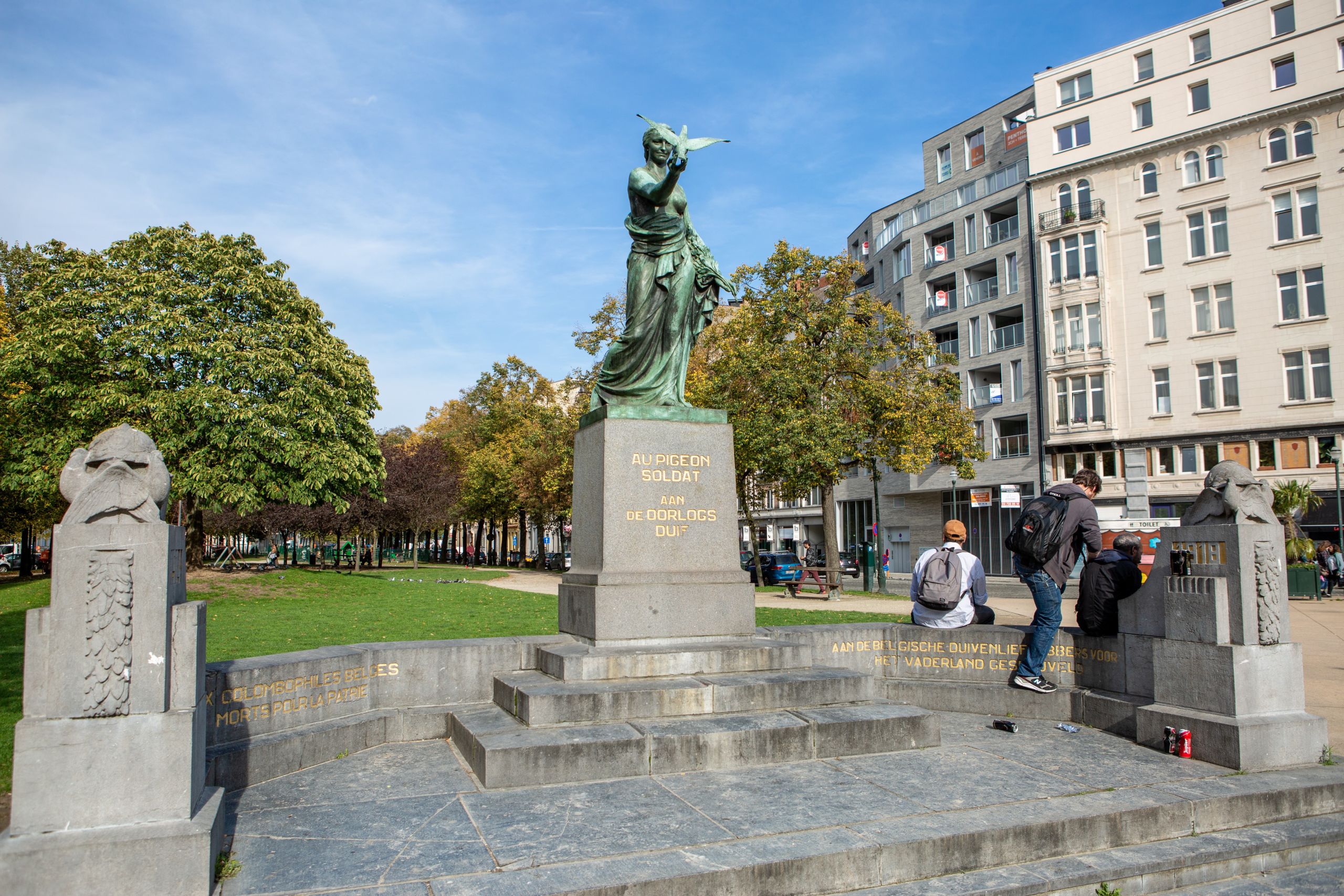 En ce début d’après-midi de semaine, on y voit exclusivement des hommes. Ce lieu se veut pourtant familial, en témoigne sa plaine de jeux. Mais “il ne fonctionne pas”. Il est même, selon l’architecte bruxelloise, un contre-exemple en termes d’égalité de genre. Les espaces sont fuyants, la toilette publique – qui théoriquement favorise la présence de femmes – attire des personnes en situation de dépendance. La femme, à l’image du monument du Monument au Pigeon Soldat, est occultée.