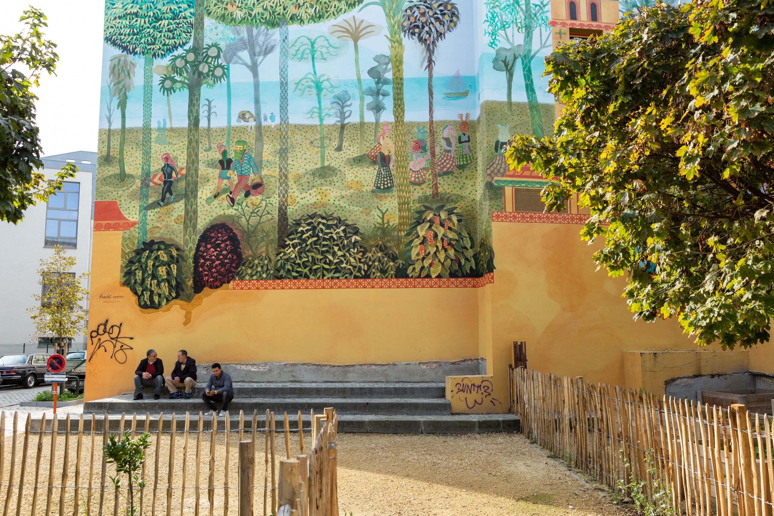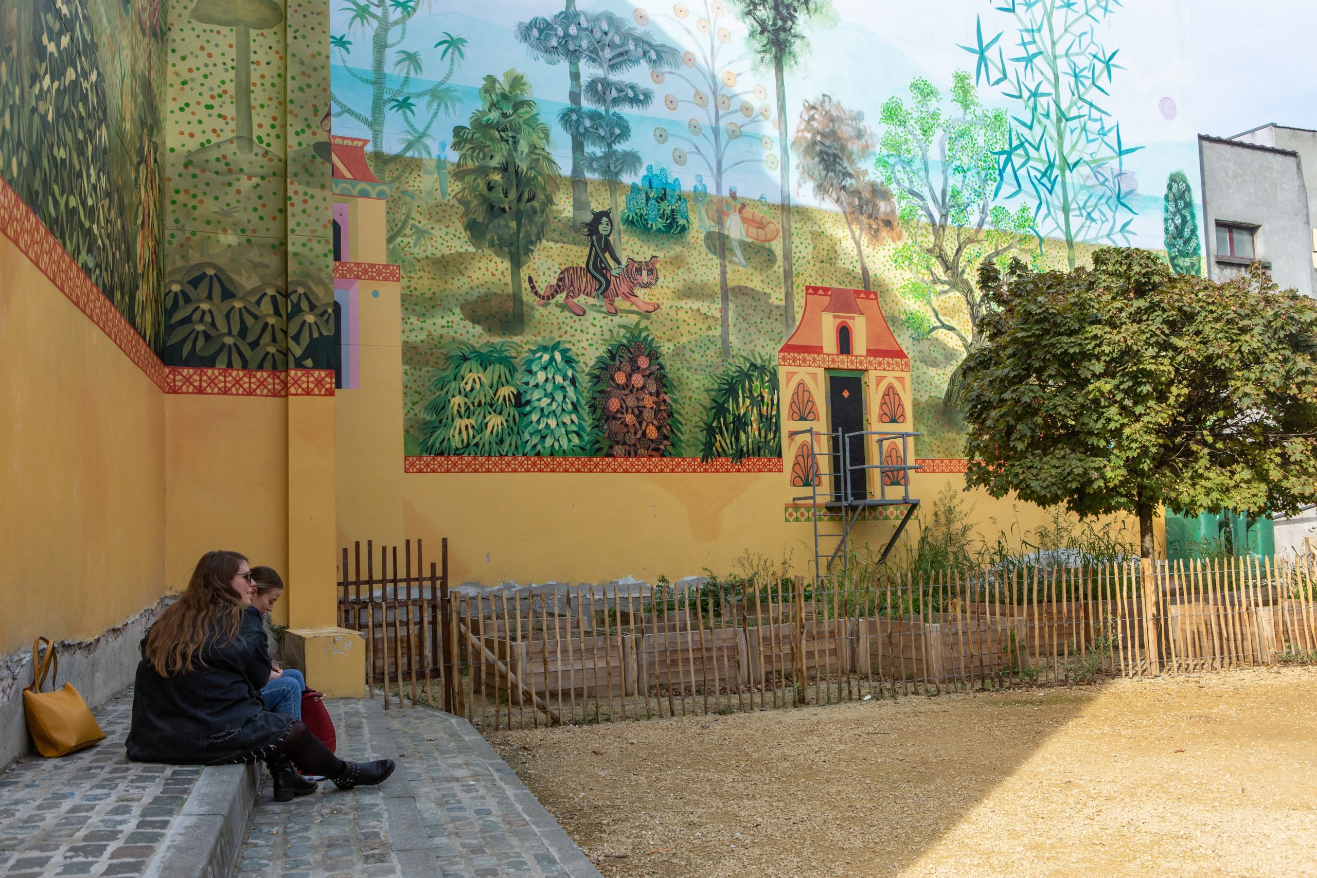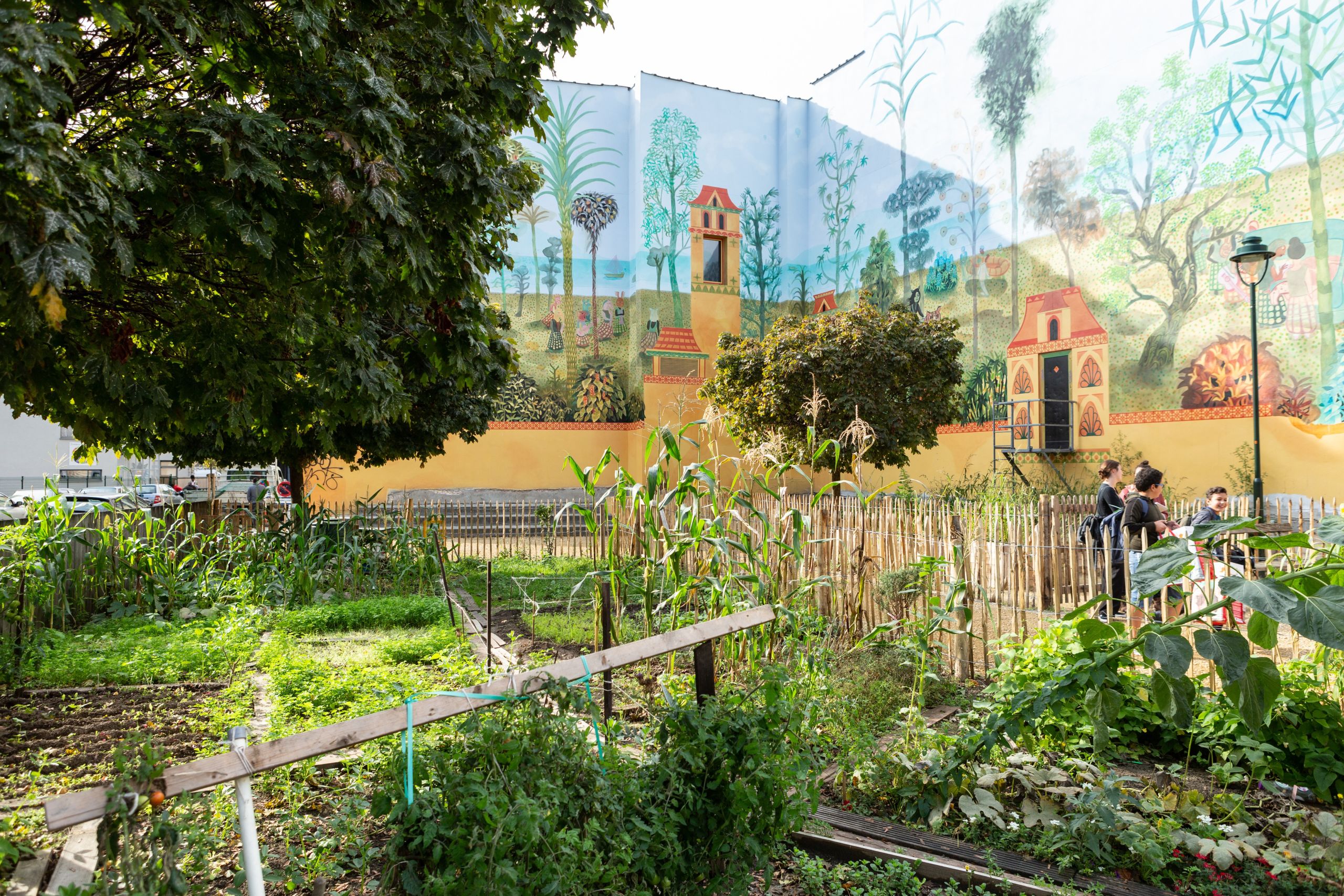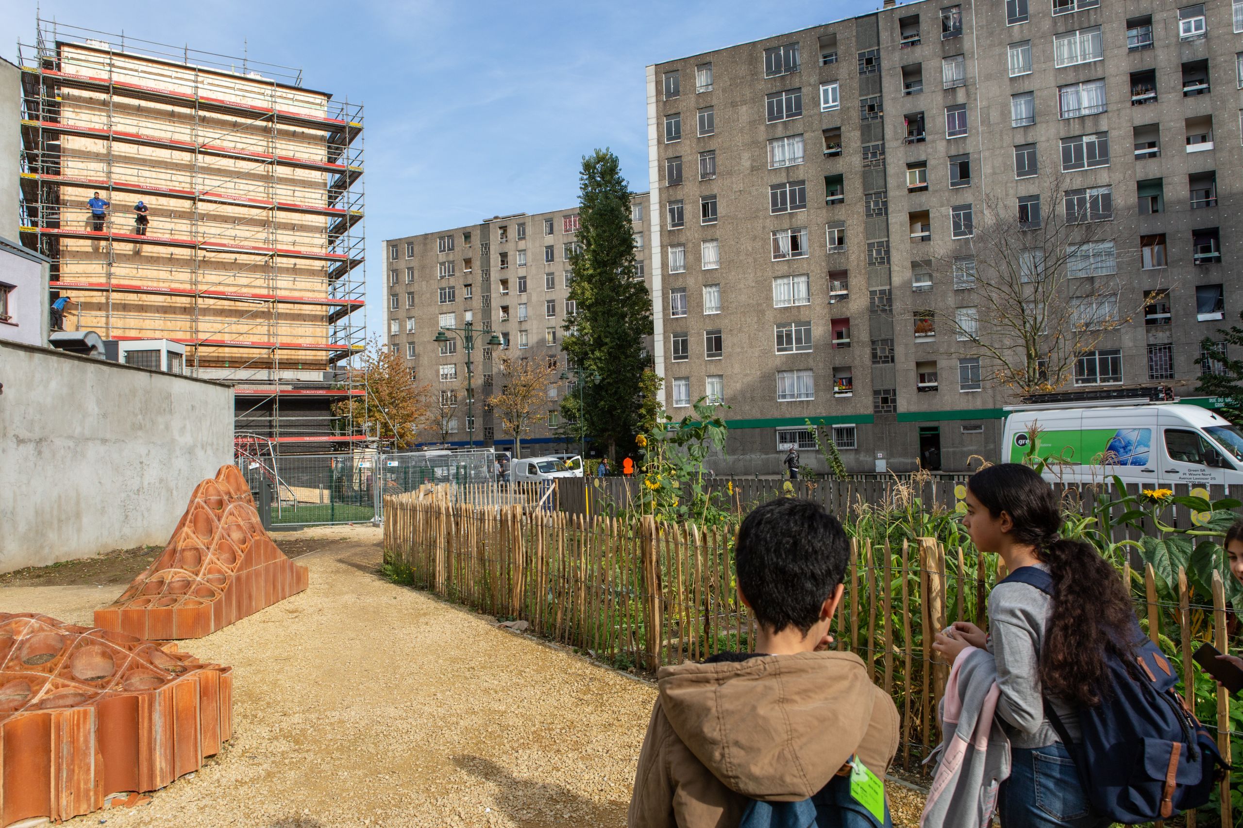 “On préfère des espaces dans lesquels la vue est dégagée. Pour donner un sentiment de cocon, on peut privilégier les arbres plutôt que d’épais buissons”, ajoute Mme Gloesener. Ici, des clôtures en bois fin, des arbres et des parcelles de potager ferment l’espace et créent une “une sorte de bulle”.