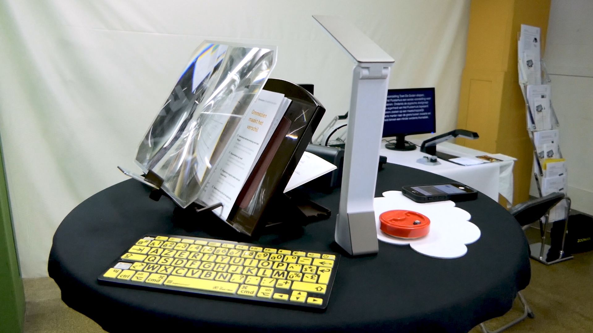 Au salon BrailleTech participent essentiellement de grandes entreprises. Mais d’autres plus petites ont aussi leur place sur ce marché. C’est le cas d’Ommezien, une société de distribution de produits pour aveugles et malvoyants (loupes, barrettes braille,…) créée il y a trois ans par Koen Govaert et son épouse Kathleen Boogmans, malvoyante.