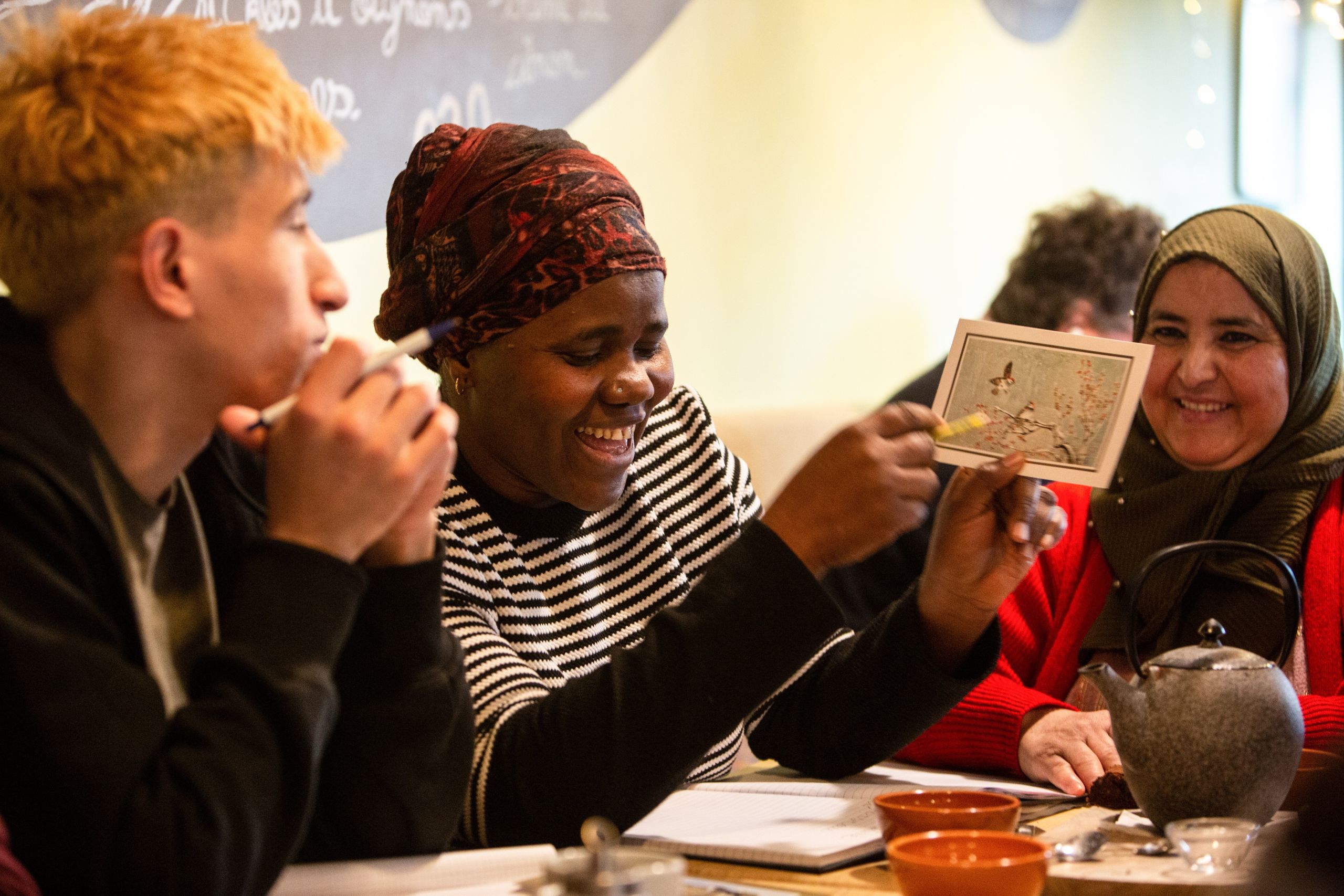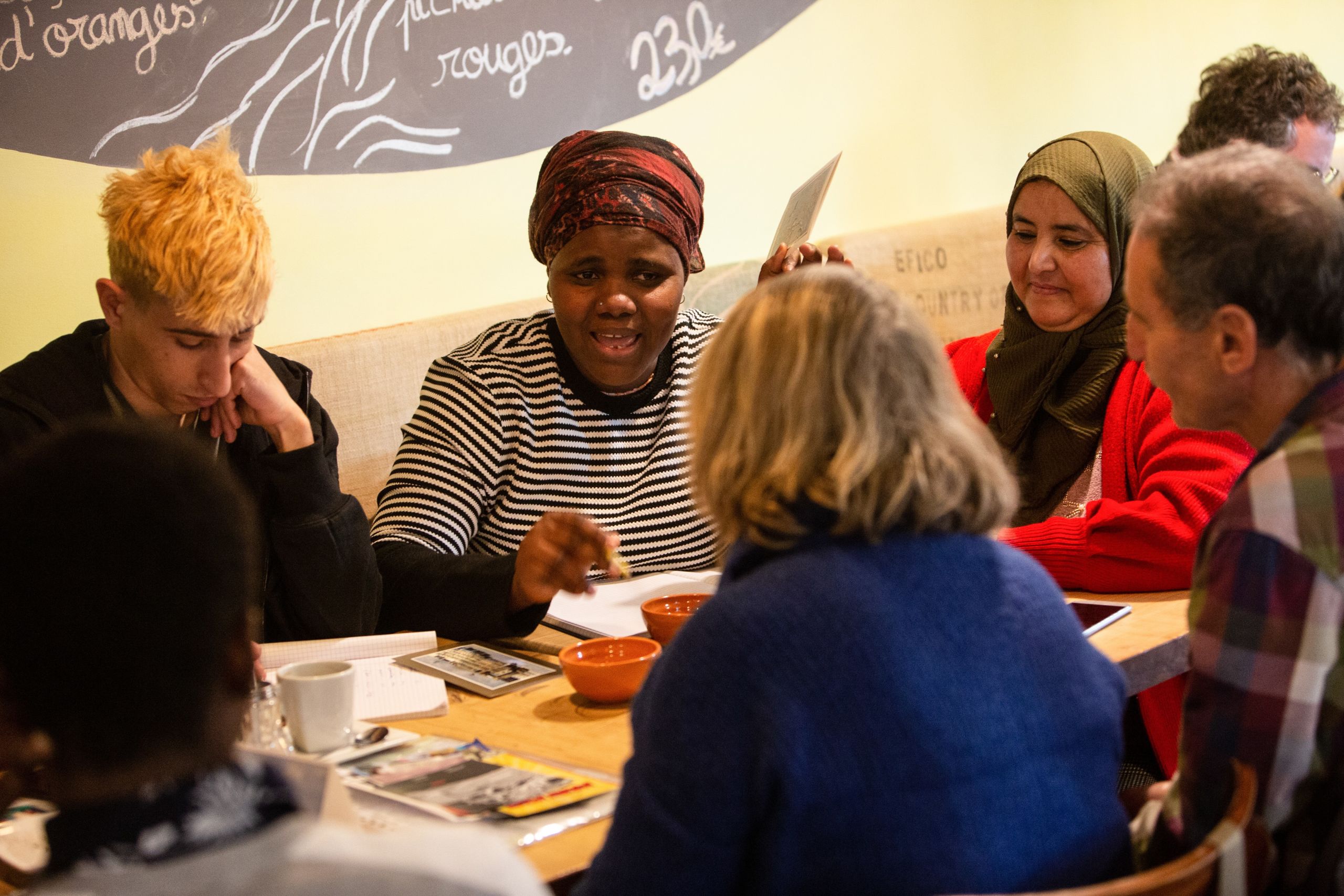 Après quatre ans de voyage depuis le Soudan, Abdullah a entamé un programme d’accès à l’université. Depuis six mois, il apprend le français… et le parle plutôt bien. Les tables de conversation sont une opportunité supplémentaire de pratiquer la langue tout en rencontrant des gens et en tissant des liens.