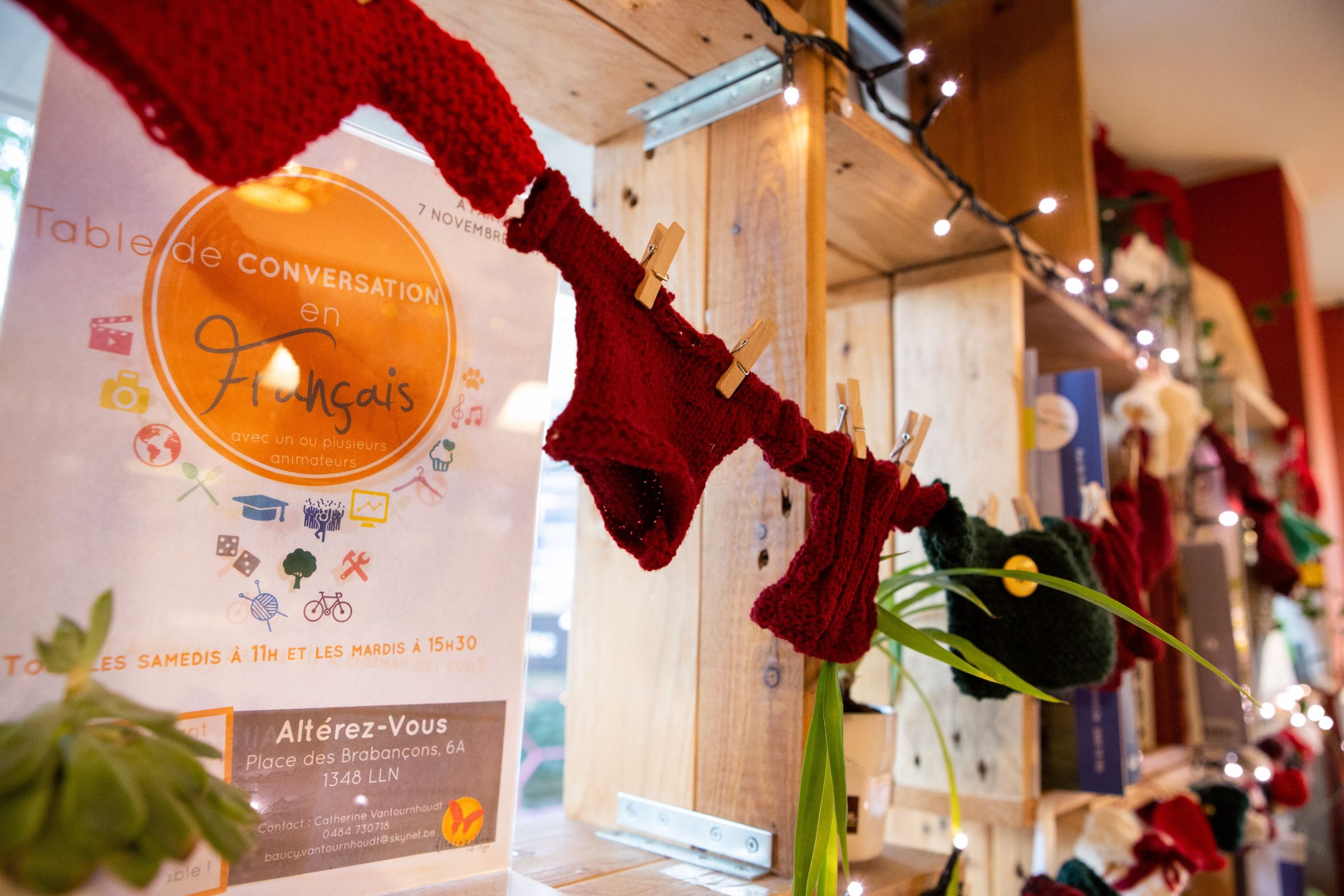 Les morceaux de gâteau au chocolat sont disposés sur les quelques tables regroupées pour n’en former qu’une seule. Salvatore sert le thé à qui veut alors qu’Adbullah a, lui, déjà vidé sa tasse de café fumant. “Tous les mardis, je vais à la rencontre du monde”, se réjouit Claire. C’est elle qui anime la table de conversation en français organisée par le café citoyen néolouvaniste “Altérez-vous”. Les participants d’une semaine ne sont pas nécessairement ceux de la suivante. Alors, un tour de présentation s’impose. Une première gageure pour Motasem, originaire de Palestine et présent depuis quelques semaines en Belgique. Cadi, venue de Guinée Conakry, n’en mène pas large non plus. L’un et l’autre s’accrochent, essaient. Le premier, les yeux parfois rêveurs sous une épaisse chevelure teinte en blond, note chaque nouveau mot et pianote sur son téléphone pour s’assurer d’en comprendre la signification. Entre le gel et la neige, difficile d'expliquer la différence, lorsque le vocabulaire manque.