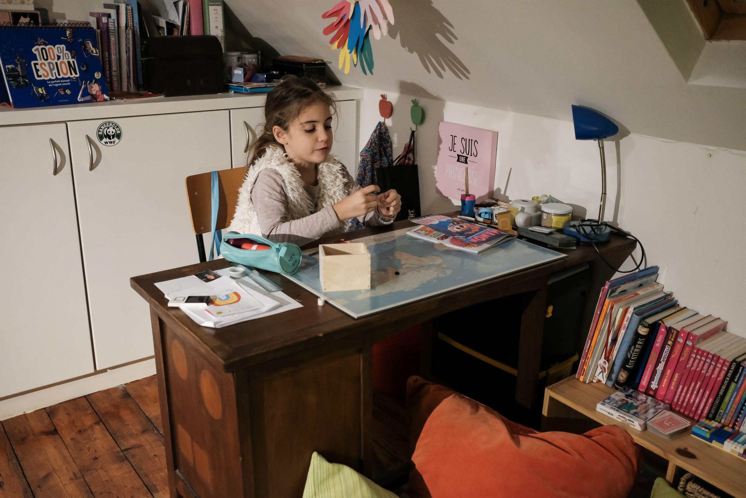 Des achats qu'elle fait tant pour elle-même que pour les enfants. Eux, d’ailleurs, ont embrayé dans l’aventure avec enthousiasme. Camille, assise derrière son petit bureau de bois foncé acheté en seconde main cette année, dit d’ailleurs « aimer sa chambre ». Tout ou presque a connu une vie avant elle, à l’instar du lit de Thomas, qui dort avec elle. « C’était celui du frère de maman puis de son filleul ». « Ça ne me dérange pas », réagit-elle. Mieux, elle aime bien.