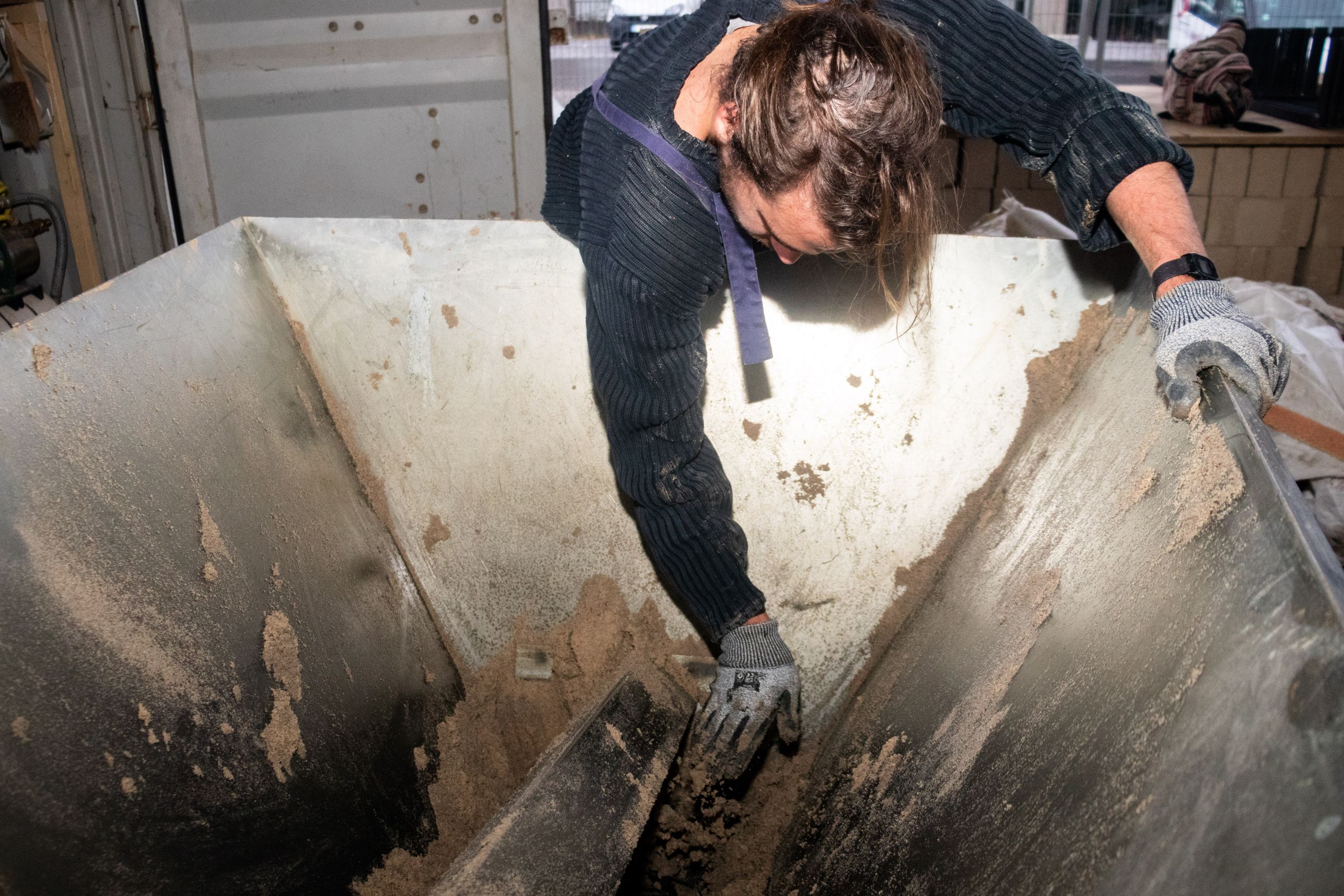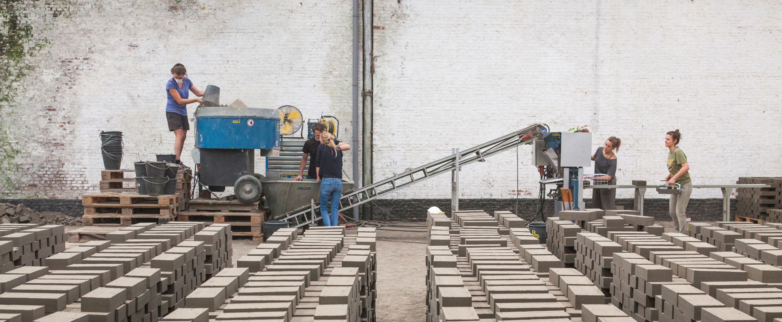 Avenue du port, l’unité de production dispose ainsi d’un petit stock de sable et de terre argileuse issus de chantiers bruxellois qu’elle transforme sur place en fonction des commandes reçues.