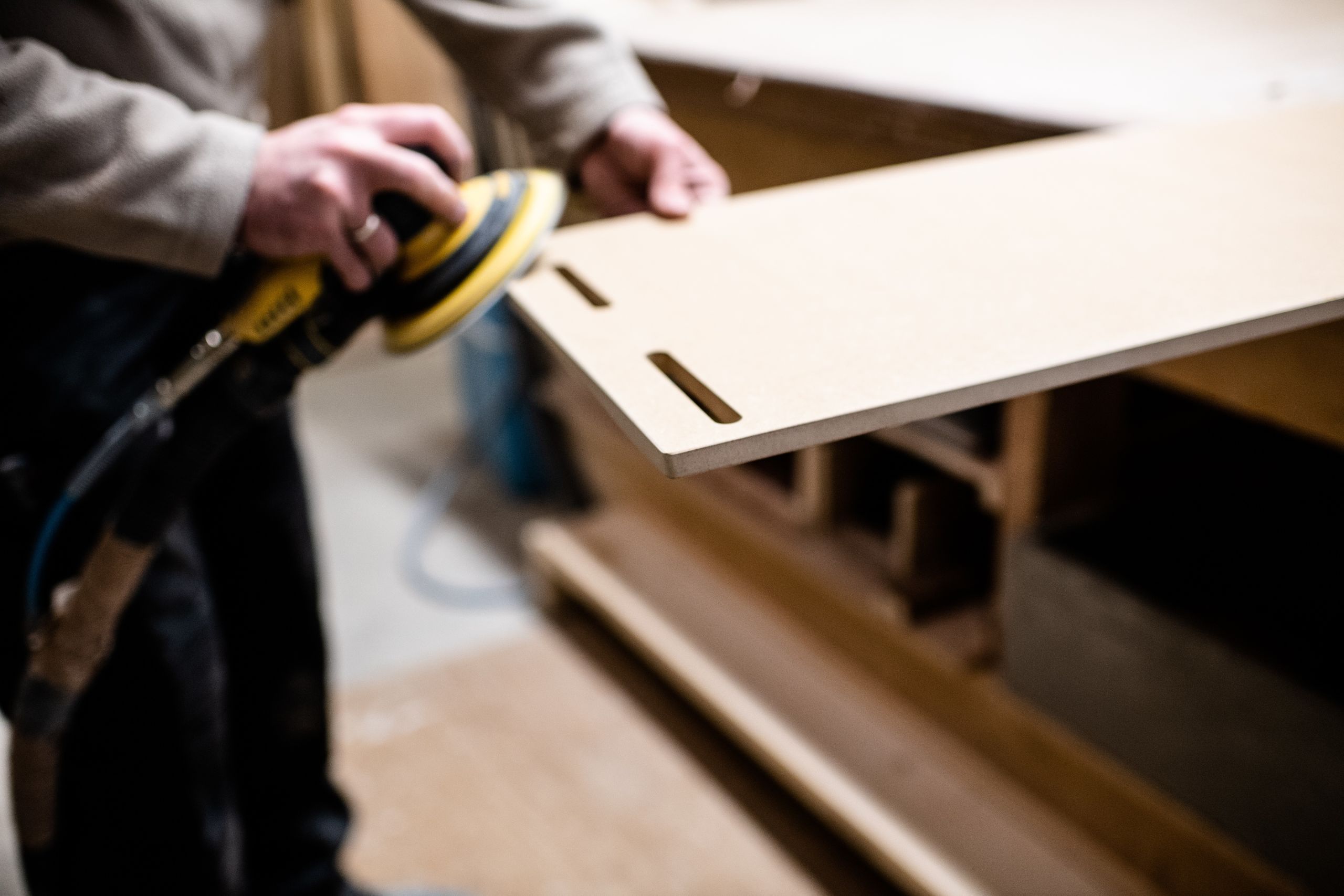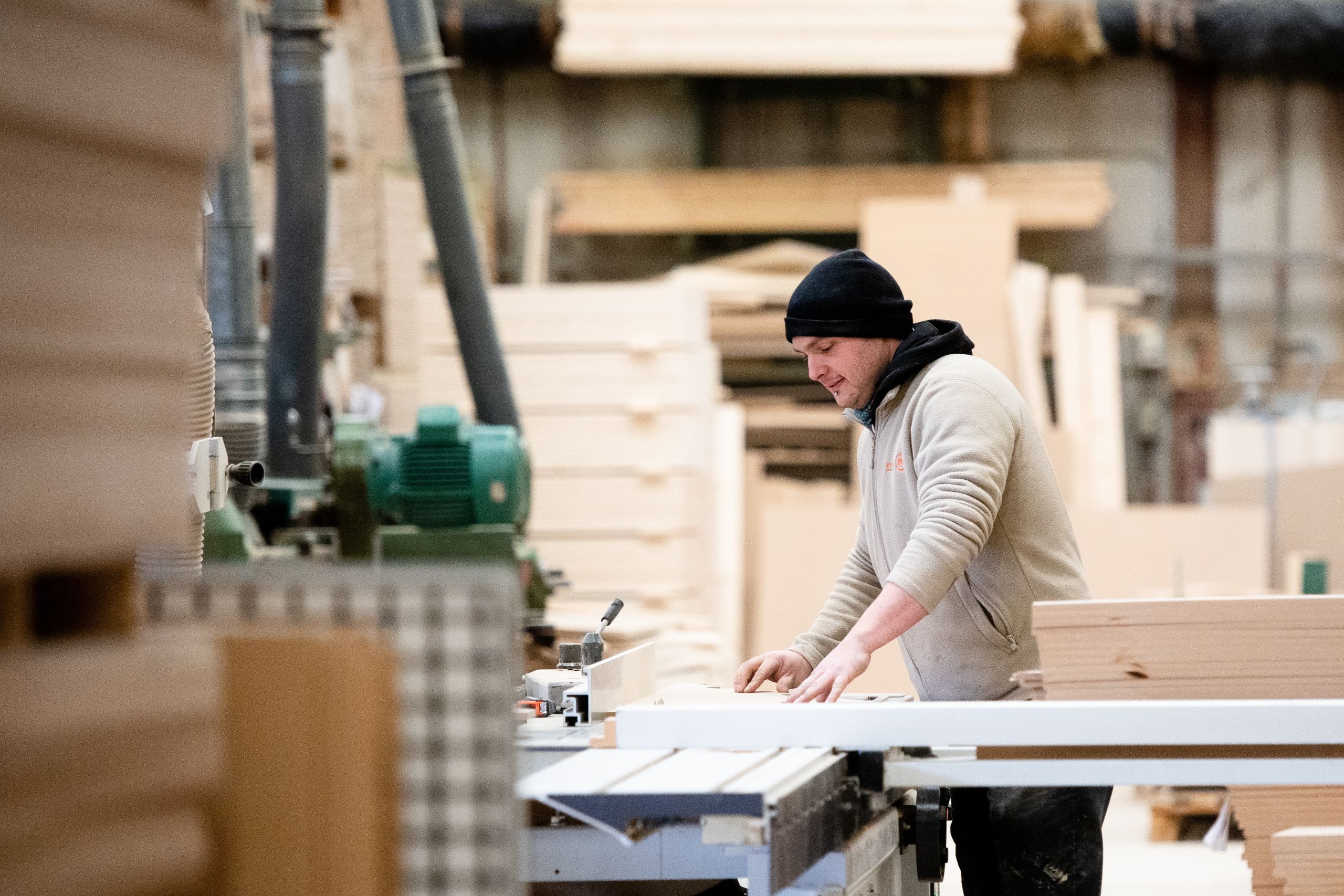 Une odeur de bois emplit l'immense atelier de production. Epicéa, chêne, hêtre... s'étalent et s'empilent à perte de vue sur de hautes étagères. Derrière son établi, Joël s'applique à corriger les petites imperfections du matériau. Entre ses mains expertes, une planche de sapin blanc sera bientôt transformée en porte de cabane. Pas de celles que l'ont accroche aux arbres, non. Dans cet atelier hennuyer, on fabrique du mobilier pour enfant. Et le « lit créatif », c'est le best-seller de Mathy by Bols. Il en sort 100 à 200 exemplaires par quinzaine.